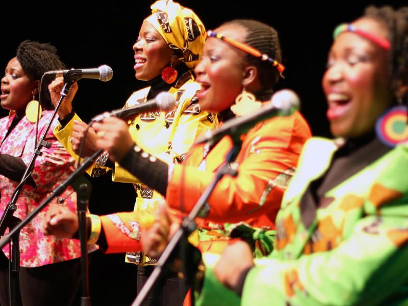 Showing their cross-genre skill, Nobuntu performed several covers including the mbube song “The Black President,” honoring Nelson Mandela, and the iconic “Amazing Grace.” Their rendition of “Amazing Grace” began with a single vocal line, which split into graceful harmonies before launching into true mbube style with playful syncopation and an echoing chorus overplayed with silky fragments of the verse.